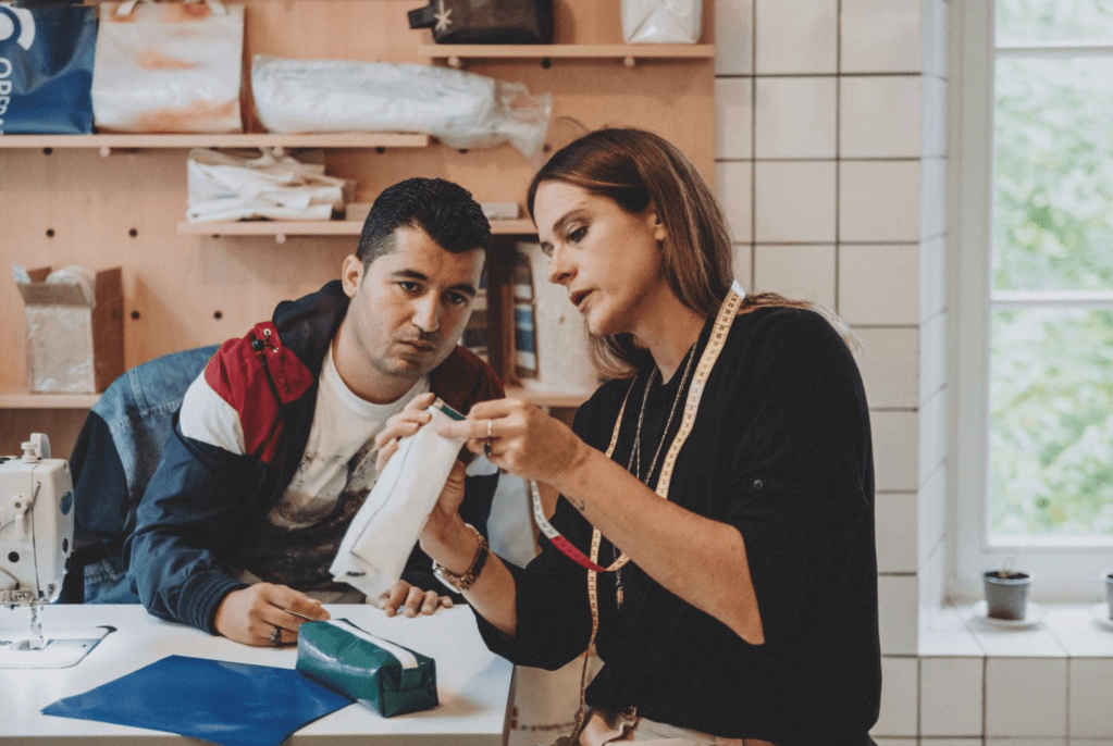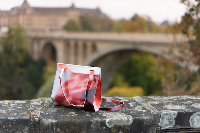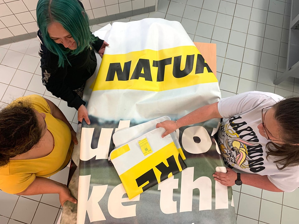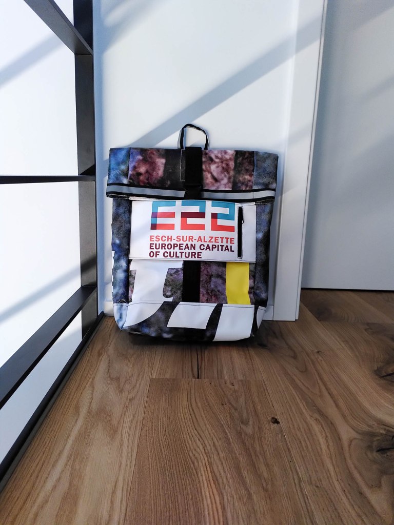 In 2016, when the renovation work was completed, for the Adolphe Bridge to be ready for the arrival of the Luxtram, the tarpaulin was still there. COOPERATIONS, a national social and inclusive company, met with officials from the Ministry and together with the city of Wiltz, the Luxembourg hotspot city of circular economy and with designer Julie Conrad, the tarpaulin was bought and brought to Wiltz, and a workshop with workers with a disability was started from scratch. The rest is history.
